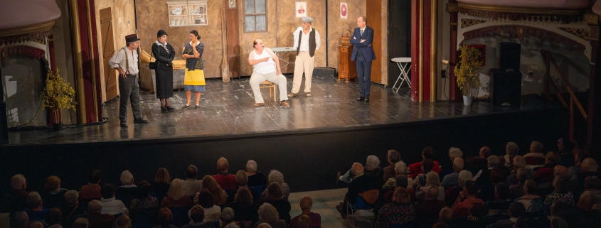 Pour sa deuxième journée, le Casino Municipal a vibré au rythme des rires du public venu en nombre assister à la représentation de la célèbre pièce de Marcel Pagnol, « La Femme du Boulanger », magistralement interprétée par la Compagnie Baudracco.