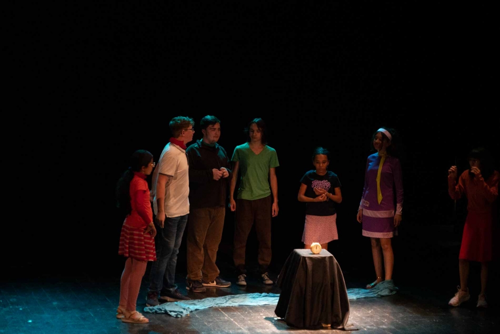 Sur le thème de Scooby-Doo et le mystère du Manoir Hanté, les élèves de la section théâtre, qui incarnaient les différents personnages du dessin animé, étaient accompagnés de ceux des disciplines musicales (chant et divers instruments) qui sublimaient la pièce.