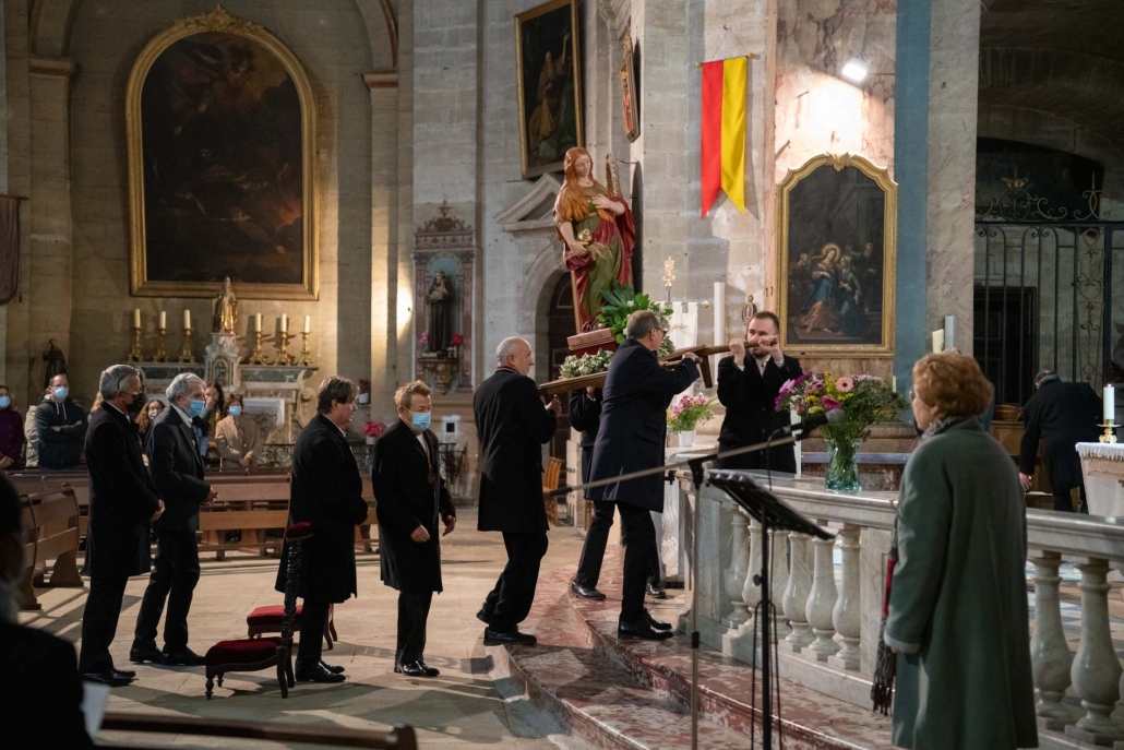A la fin de la messe, à laquelle ont participé de nombreuses Arlésiennes, le groupe Li Festejaïre et la confrérie Sainte Marie Madeleine, un apéritif convivial était organisé par les paroissiens afin de fêter l’événement.
